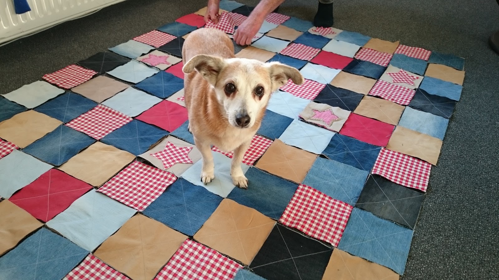 Onder de quilt ligt steeds een schone lap, het ligt niet zo op straat ;-)
